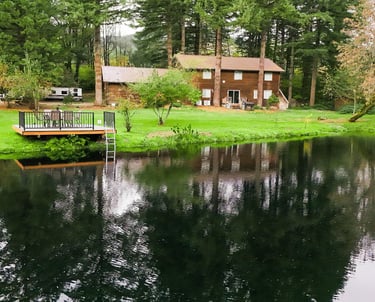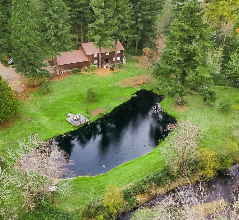 Explore the enchanting lava tubes on an adventurous hike, or simply unwind by the soothing sounds of the bubbling brook. Spend lazy afternoons sunbathing on the dock, soaking in the serene views of the pond.
