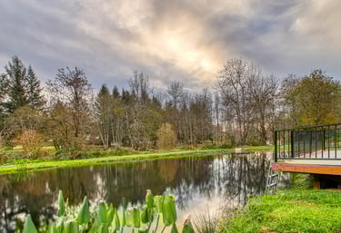 Nestled in a serene setting, our venue offers a picturesque backdrop for weddings, reunions, and retreats with a beautiful pond and spacious home.
